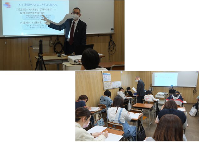 4月20日(土) 新中学1年生対象の「定期テストガイダンス」を行いました。中学生に進級後、初めての中間テストに向けて、テスト勉強のしかたや佑学社のテスト対策指導についてお話ししました。 みんなで社会のプリントを暗記する練習をしたところ、保護者のみなさんも熱心に取り組んでくださいました。 さあ、いよいよ中間テスト!!みんなで頑張りましょう。