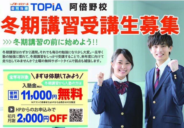 第一ゼミナールトピアでは12/24(水)より冬期講習を開講いたします。