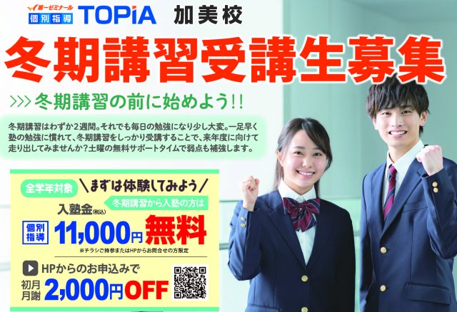 第一ゼミナールトピアでは12/24(水)より冬期講習を開講いたします。